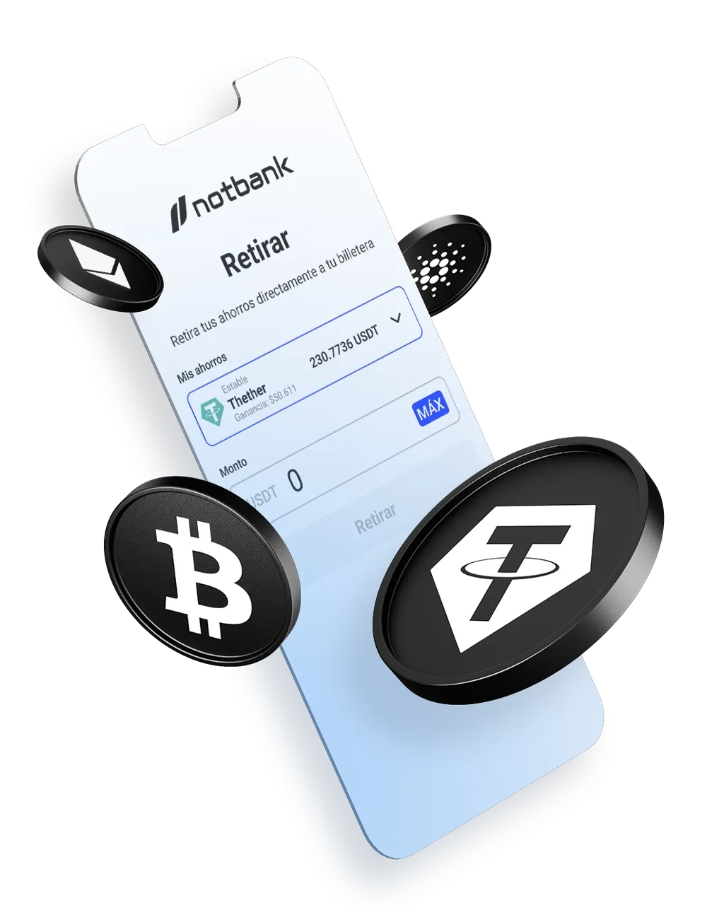 Transfiere BTC, ETH, XRP o SOL a tu cuenta notbank de forma segura.
