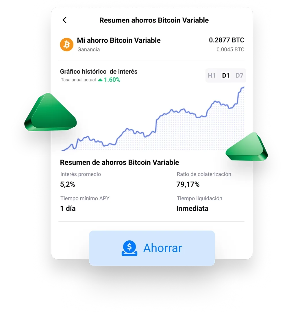 Visualiza intereses acumulados y gestiona tus activos con total flexibilidad.